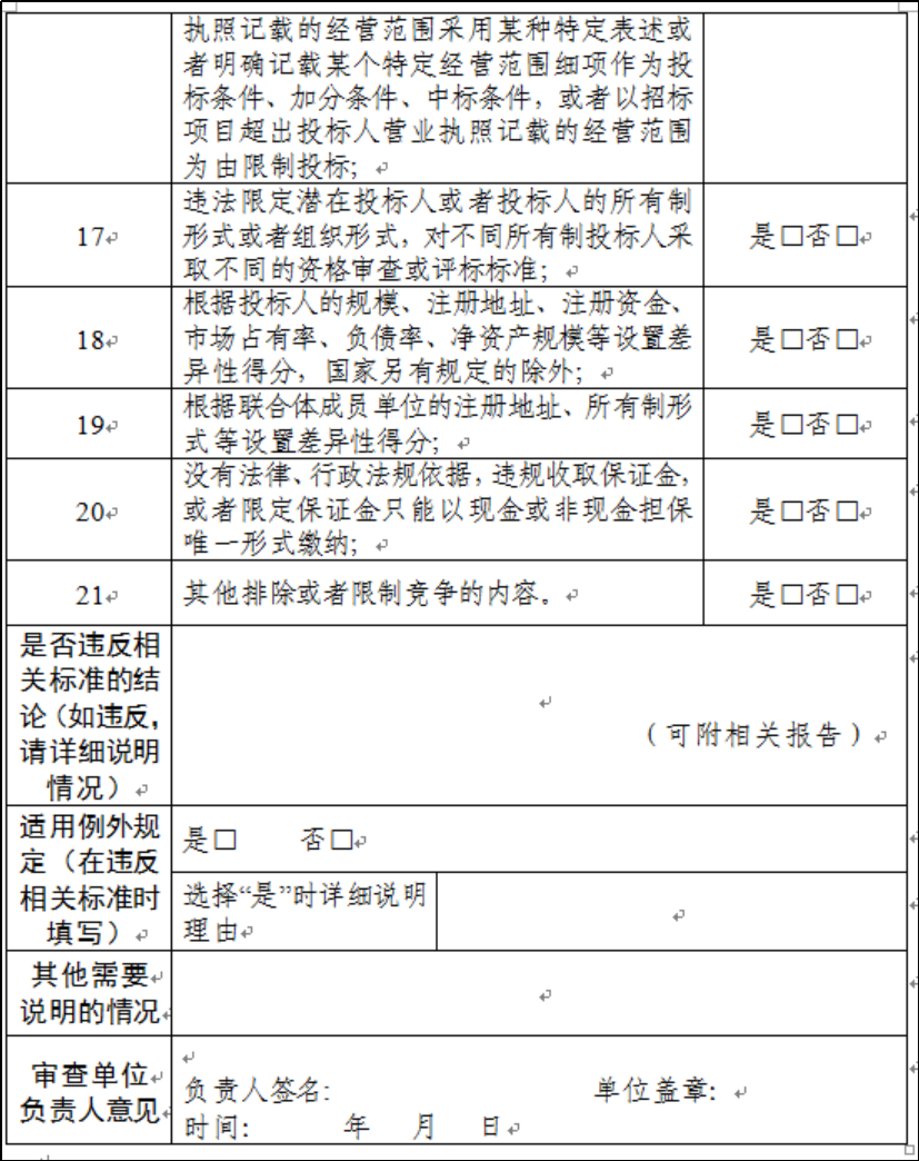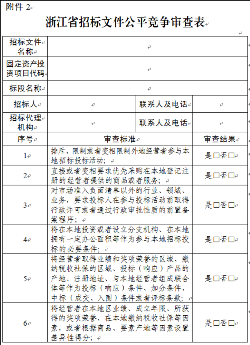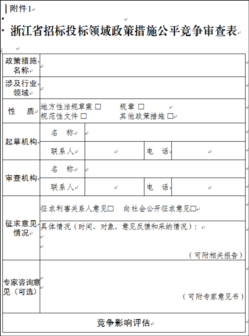 1.浙江省招标投标领域政策措施公平竞争审查表